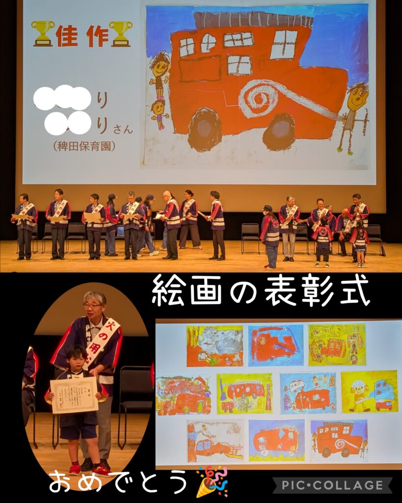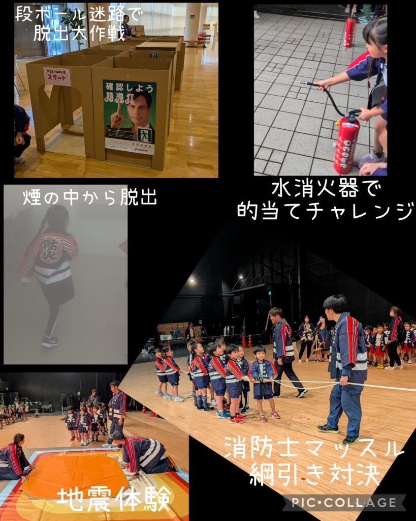 10月23日~ちびっこ消防の広場に年長児が参加しました 2025.11.01 一人が絵画展の表彰式(佳作)に参加して、みんなから沢山の拍手を貰いました。✨ その後は例年と違い、子ども達が防火・防災体験が出来るブースがあり、それを楽しく体験しながら周りました。 地震体験と煙体験は保育園で経験済みだったので、消防士さんとの綱引きが一番楽しかったようです🤗 この経験により少しでも防火・防災に興味を持ってくれたら、と思います。 ハイポーズ! ちょっと恥ずかしそう(笑) 色んな体験が出来て楽しかったね