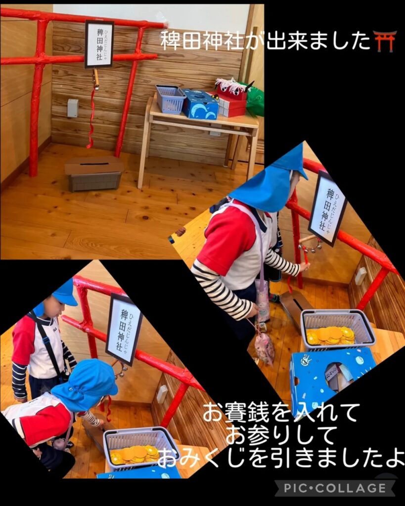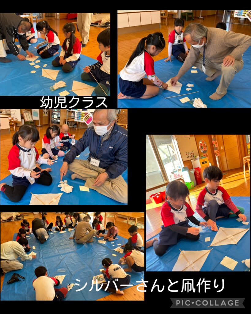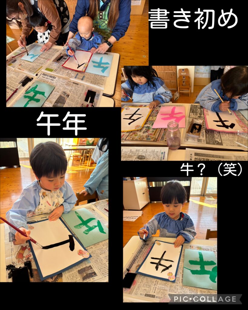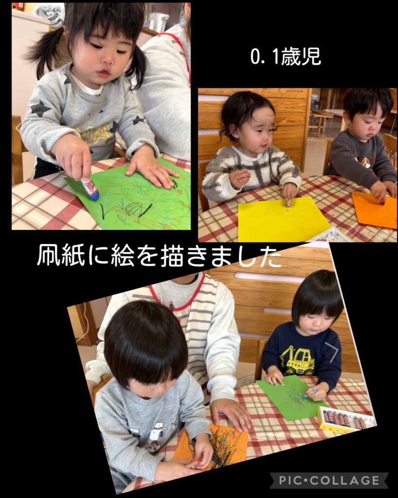 1月はお正月に因んだ活動が続いています 2026.01.17 子ども達はこの時期ならではの活動を楽しんでいます。 今2026年になり、巳年から午年になったこと、折に触れて話をしたり絵本を読んだりしました。 1月の特別感を感じてほしいと思います。 なぐり描きも大胆になってきたね 歯ブラシで馬のたてがみを描いたよ 毎年お世話になります!シルバーさんとの凧作り 笑いが沢山! おみくじは年長児が作ってくれました みんな真剣んな表情で取り組んでいました