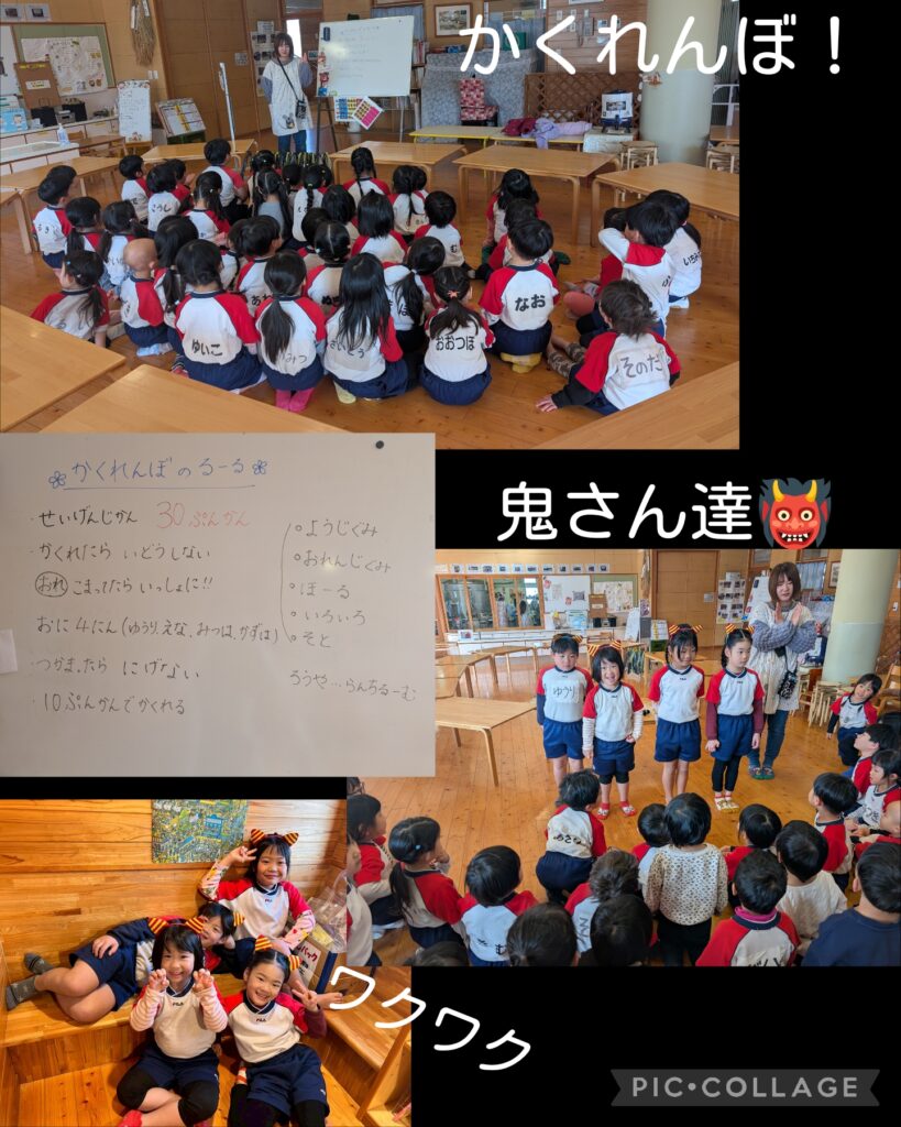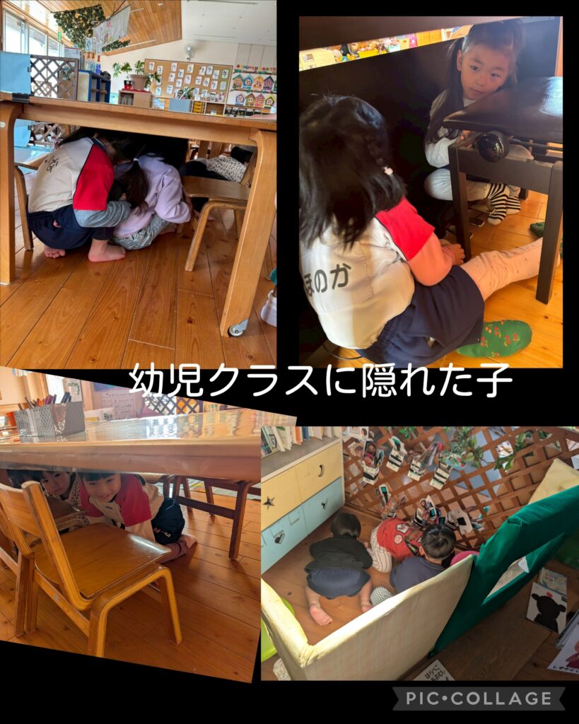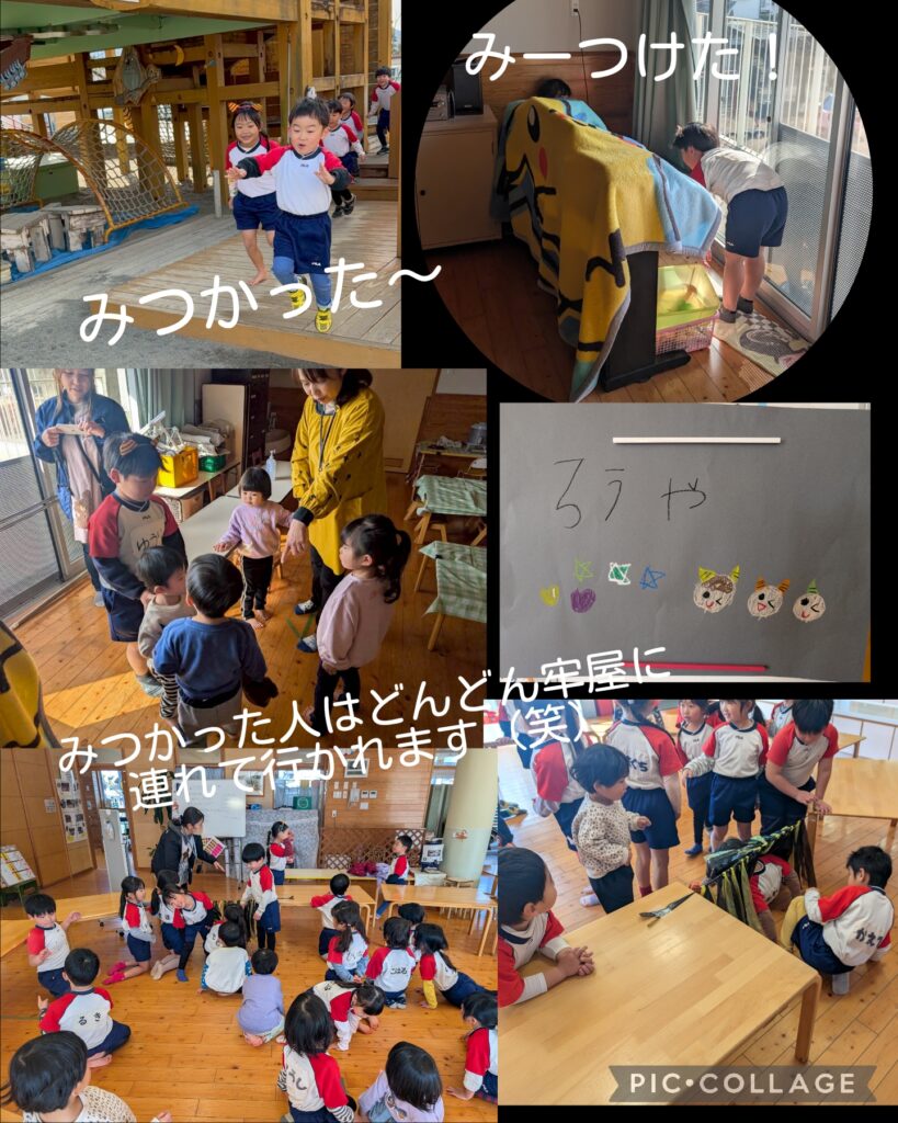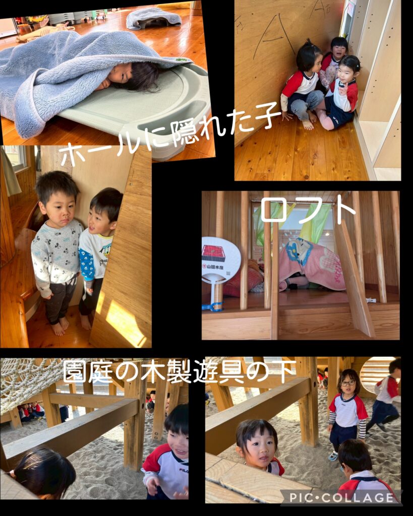 2026.01.29誕生会の前の時間に何がしたい?と子ども達と話をしたら、『かくれんぼ!』の声が多く上がり、かくれんぼを2歳児さんも入れてすることになりました。