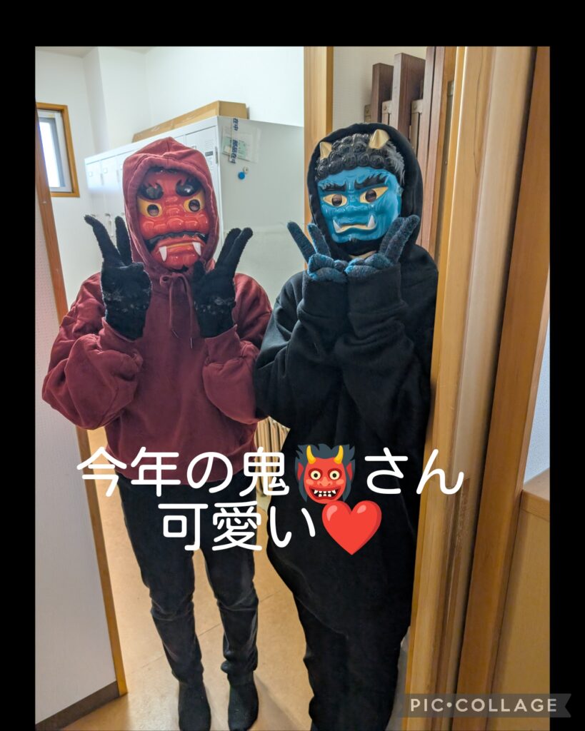 後はお部屋でゆっくり過ごしていたら、忘れたころに鬼が2人やってきました👹