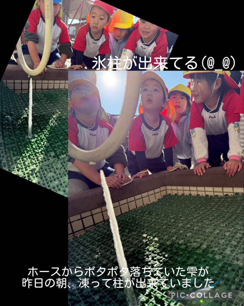 2月3日~朝の冷え込みが強く、なんと氷柱が出来ていて子ども達は大喜び!