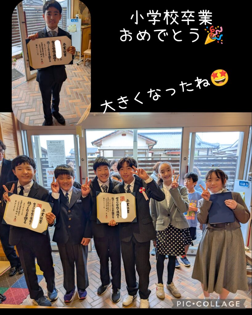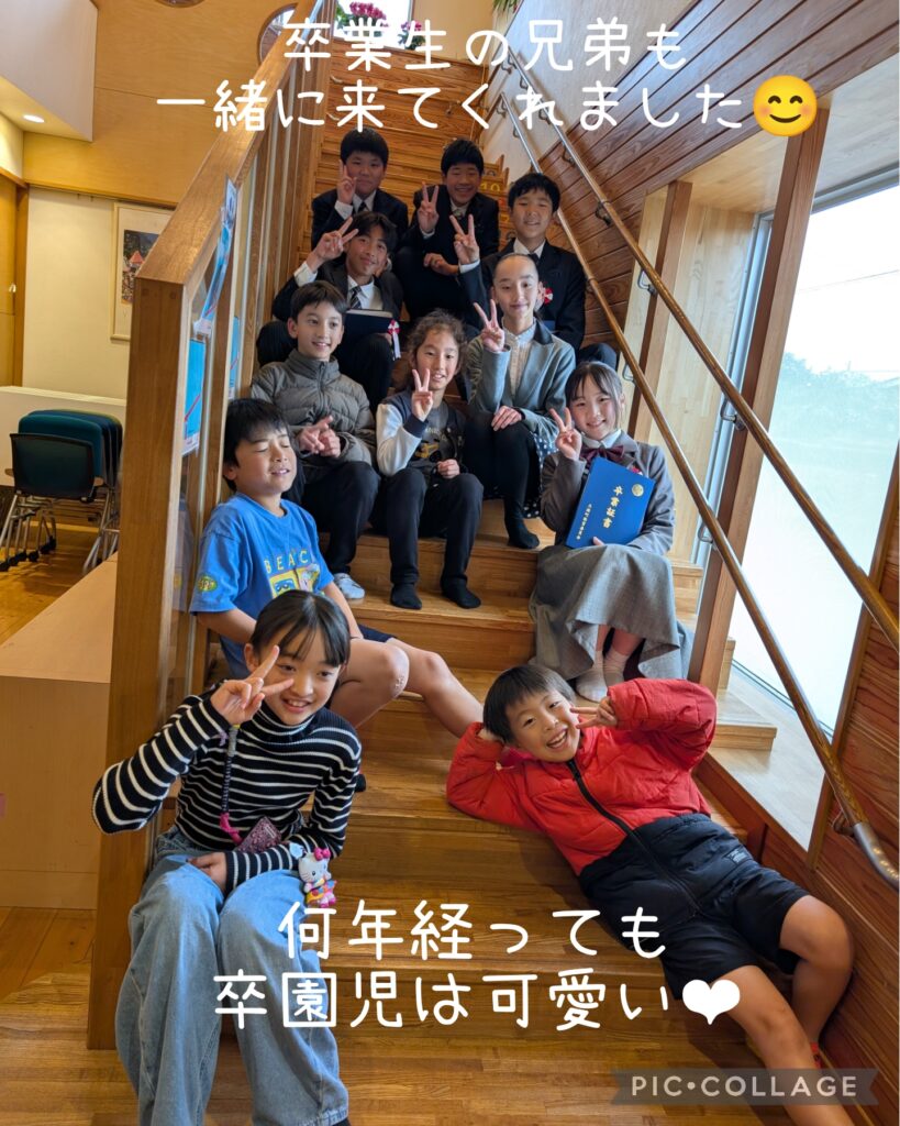 3月25日~小学校の卒業式の後、卒園児さんが顔を見せに来てくれました。 2026.03.27 小学校卒業おめでとう🎊 みんな大きくなって保育園のものが小さく感じたようです(≧▽≦) きっと心も体も成長したんだね。 中学生になったらみんなスポーツや習い事も頑張りたいそうです! 来てくれてありがとう 先生たちも頑張ります‼