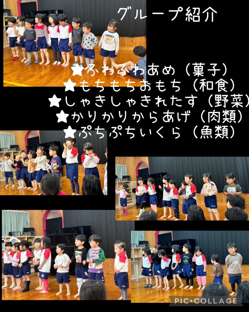 そして翌日は保育園の今年のテーマ『食事』から繋がる子ども達の世界を広げるために、年長児が話し合ってグループ名を決めました。
