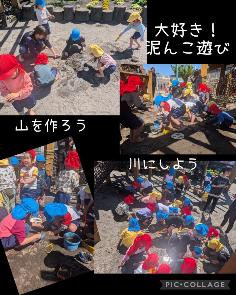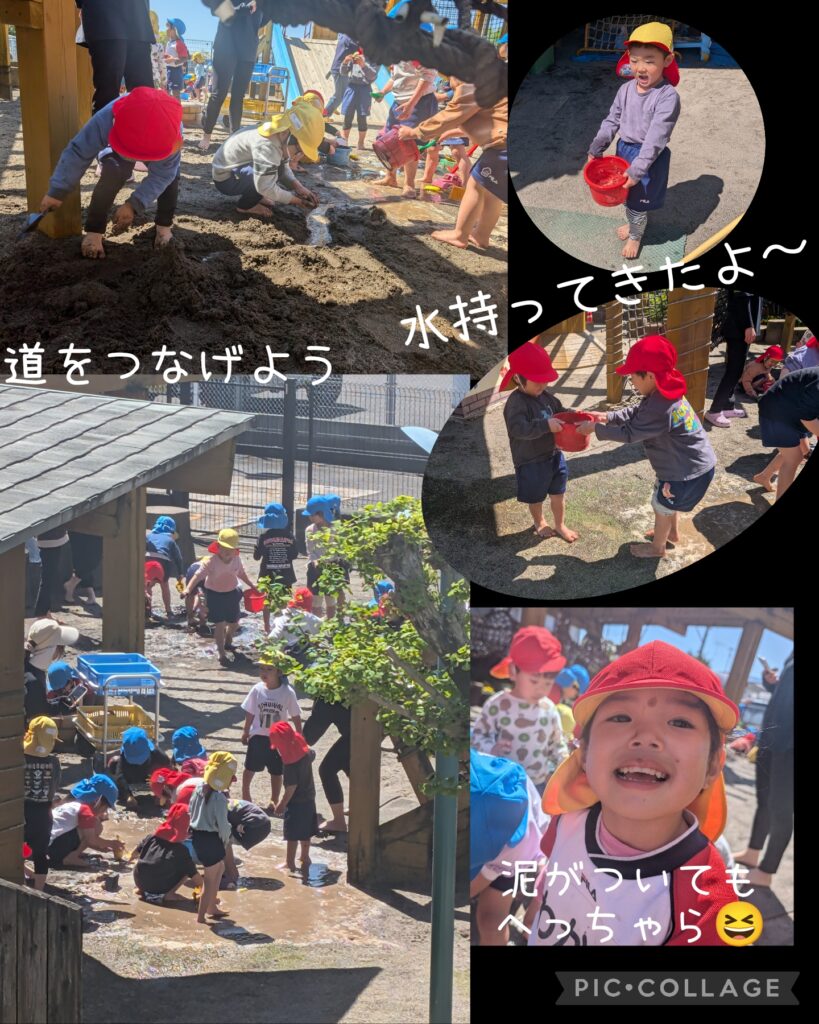 4月8日~泥んこ・砂遊びをしました 2026.04.17 今年度は園庭の泥遊びゾーンで、汚れを気にせずに遊ぶ事が出来るようにしていきます(≧▽≦) 好きな子がいれば、汚れるのが嫌いな子もいます。 自分に合った環境の下で『好き』を楽しめたらいいな、と思います✨ 0.1歳児さんは散歩に出かけて春の自然に触れてきました。 2歳児さんは朝のおやつを覗いてみました👀 進入園のお友達が早く笑顔になりますように! 子ども達が楽しそうに遊び場を広げていきます みんなで協力して! 春って素敵だね~