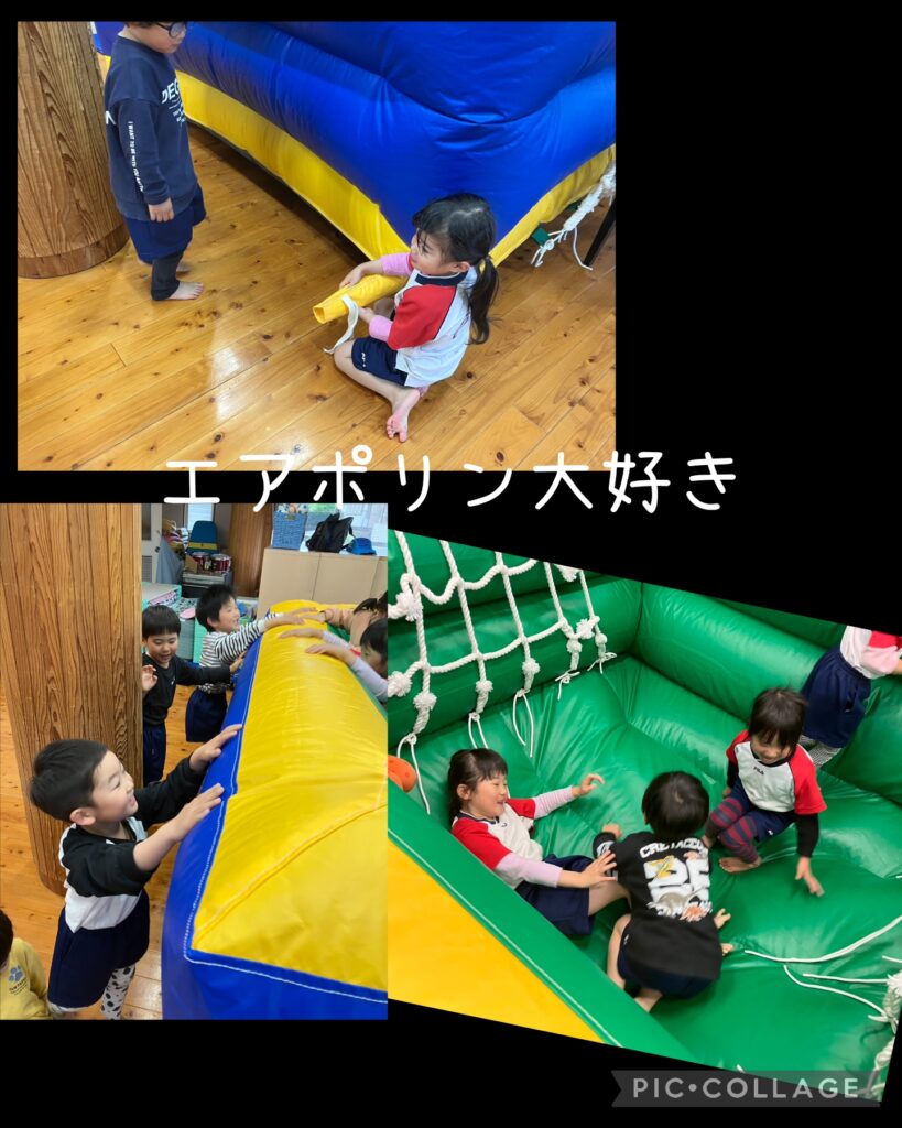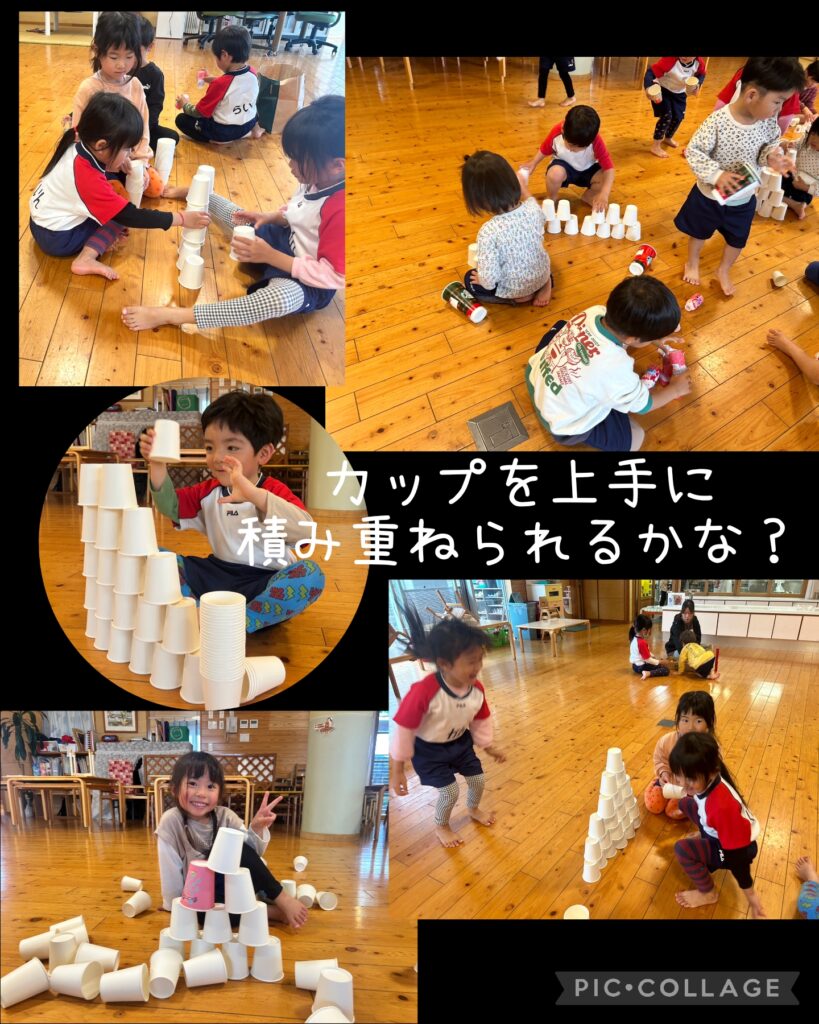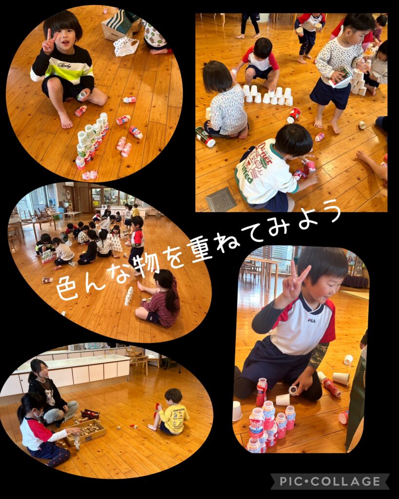 4月14日~雨が降ったけど体も動かして遊んだよ 2026.04.17 園外で交通指導をする予定でしたが、室内で各クラス紙芝居や動画を見たりして行いました。 雨の日でも体を動かす遊びが沢山出来て満足の子ども達でしたよ(*^^*) 子どもに人気のエアポリン 紙コップタワーが完成 ヤクルトやジョアの容器も積み重ねてみたよ ちょっと渋滞中も順番が来るまで待ちます